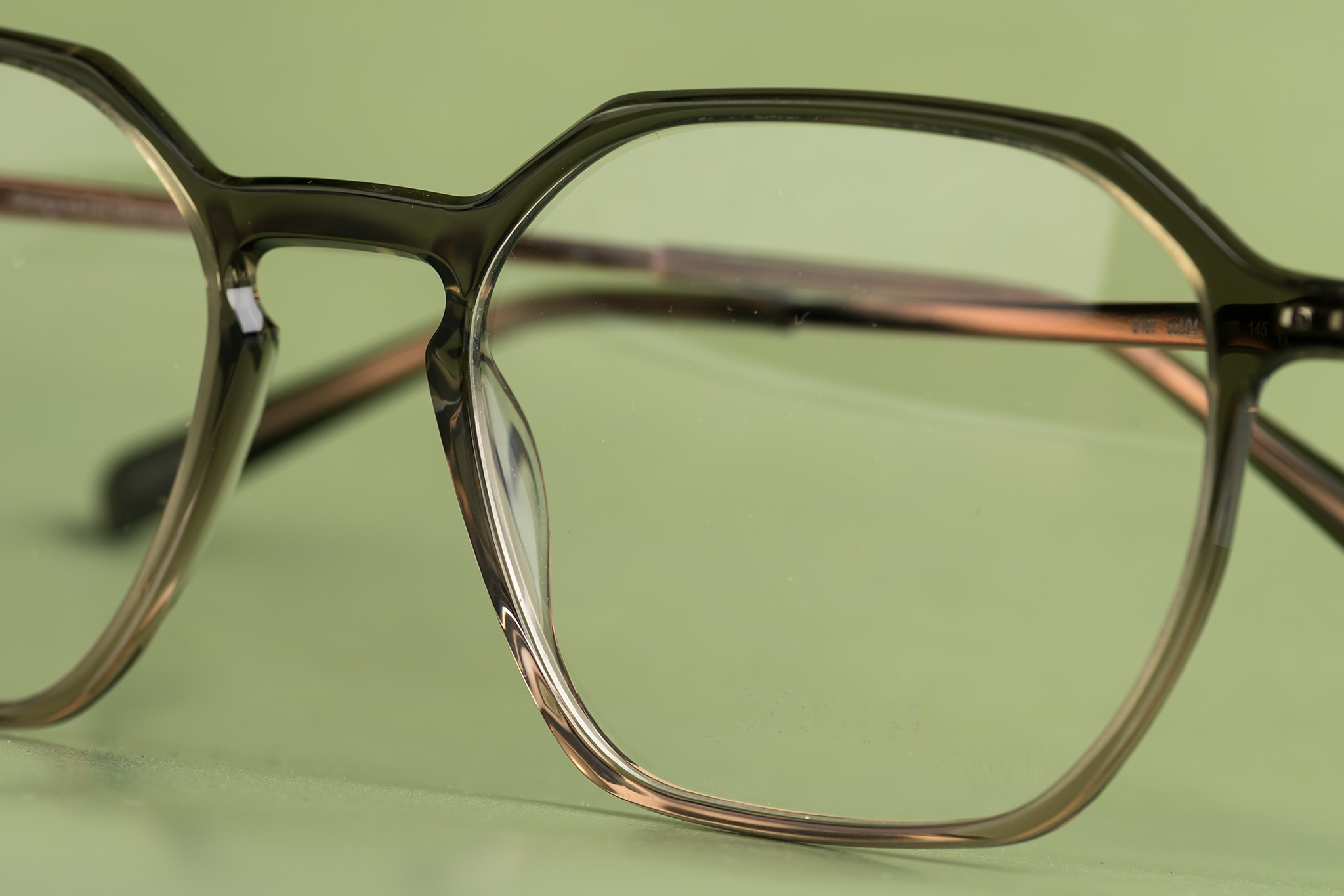 Is een rond montuur niets voor jou? Dan trekt dit hoekige model vast je aandacht. De uitgesproken vorm springt in het oog, terwijl het lichte high density materiaal in transparant bruingroen juist subtiel blijft.